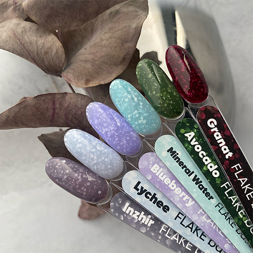 FLAKE Base — это камуфлирующие цветные базы глубоких оттенков со множеством многогранных частичек, создающих 3D-эффект!