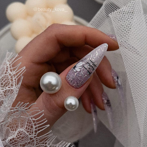 Lily Potal Base — a cool lilac base with a thousand sparkling silver-holographic ‘potal pods’ like a lilac in the ice ‘like a crystal violet