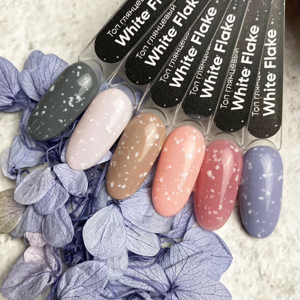 Глянцевый топ White Flake — это топ с завораживающими разноразмерными белыми частичками, который задаёт все модные тенденции! Тот самый эффект перепелиного яйца, только в белом цвете!